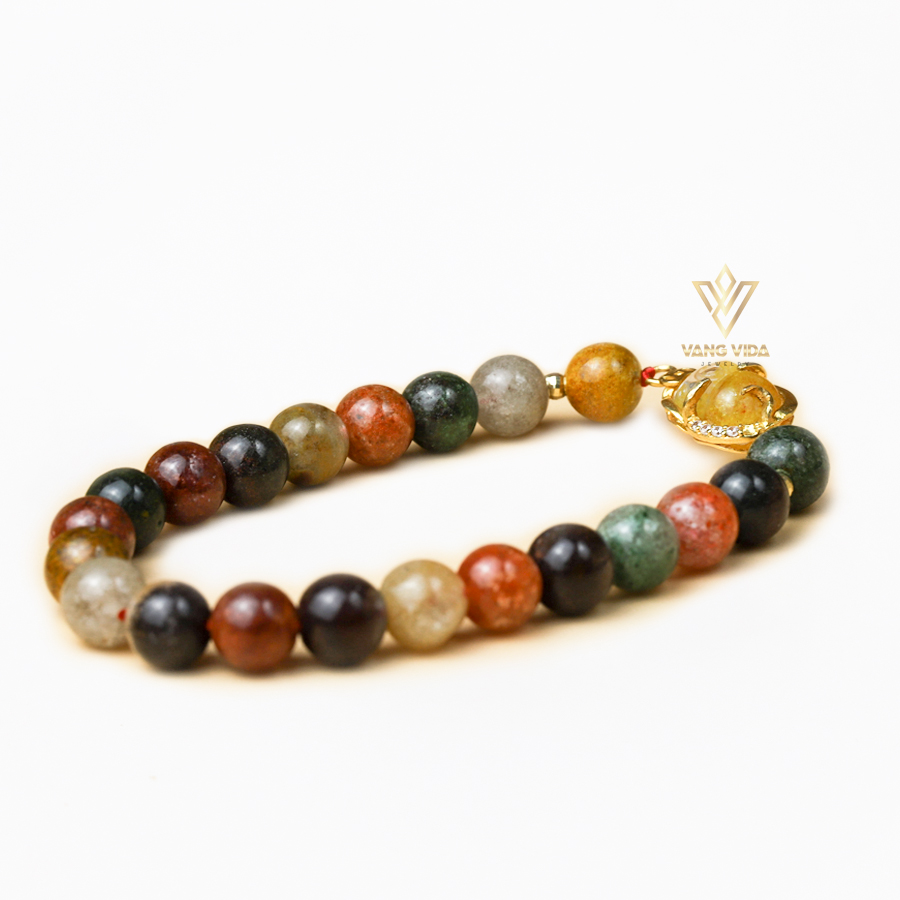 ខ្សែដៃត្បូង Ghost Quartz charm ភីសៀវស្រោបមាស 10Kជាមួយនឹងត្បូង Ghost Quartz ចម្រុះពណ៌ ដែលធ្វើអោយធាតុទាំងប្រាំចុះសម្រុងគ្នាដោយមិនរើសអើងធាតុវាសនាណាឡើយ។