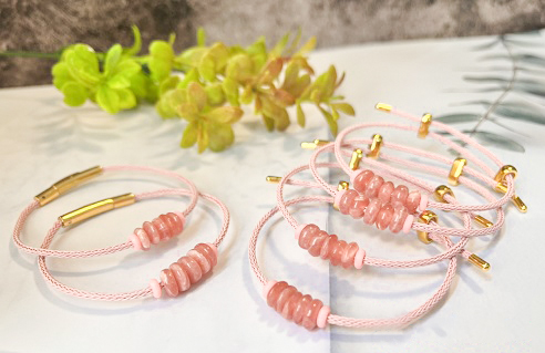 - ខ្សែដៃស្លាកកាក់ថ្ម Rhodochrosite ប្រាំគ្រាប់ គឺជាការបញ្ចូលគ្នានៃកាក់ចំនួនប្រាំដែលធ្វើពីថ្ម Rhodochrosite ។ តាមហុងស៊ុយ នេះជាតំណាងនៃរឿងល្អ៥យ៉ាងក្នុងជីវភាពរបស់មនុស្ស ។ ជាប្តបន្ទាប់គឺសន្តិភាព សំណាង ទ្រព្យសម្បត្តិ ភាពចម្រុងចម្រើន ជៀសផុតពីការអាក្រក់