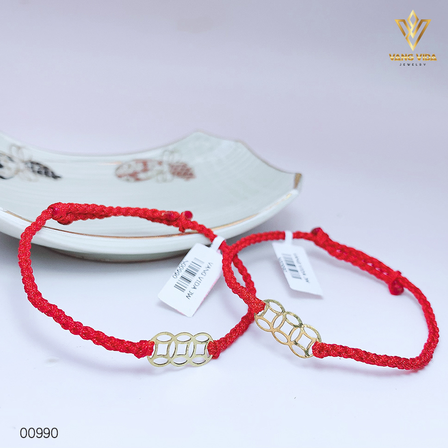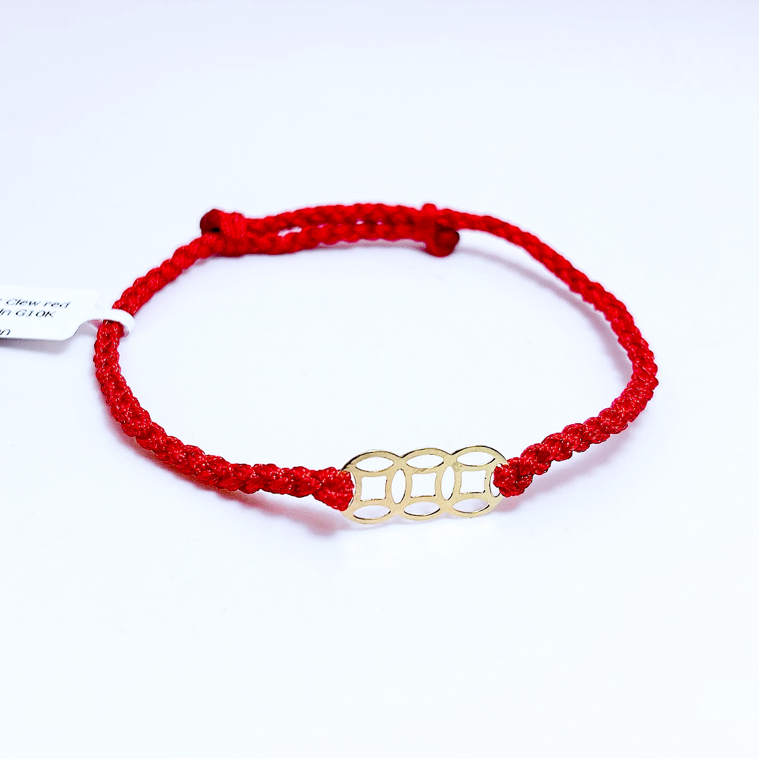 ខ្សែដៃអំបោះក្រហម ក្រងជាមួយដុំមាស10k