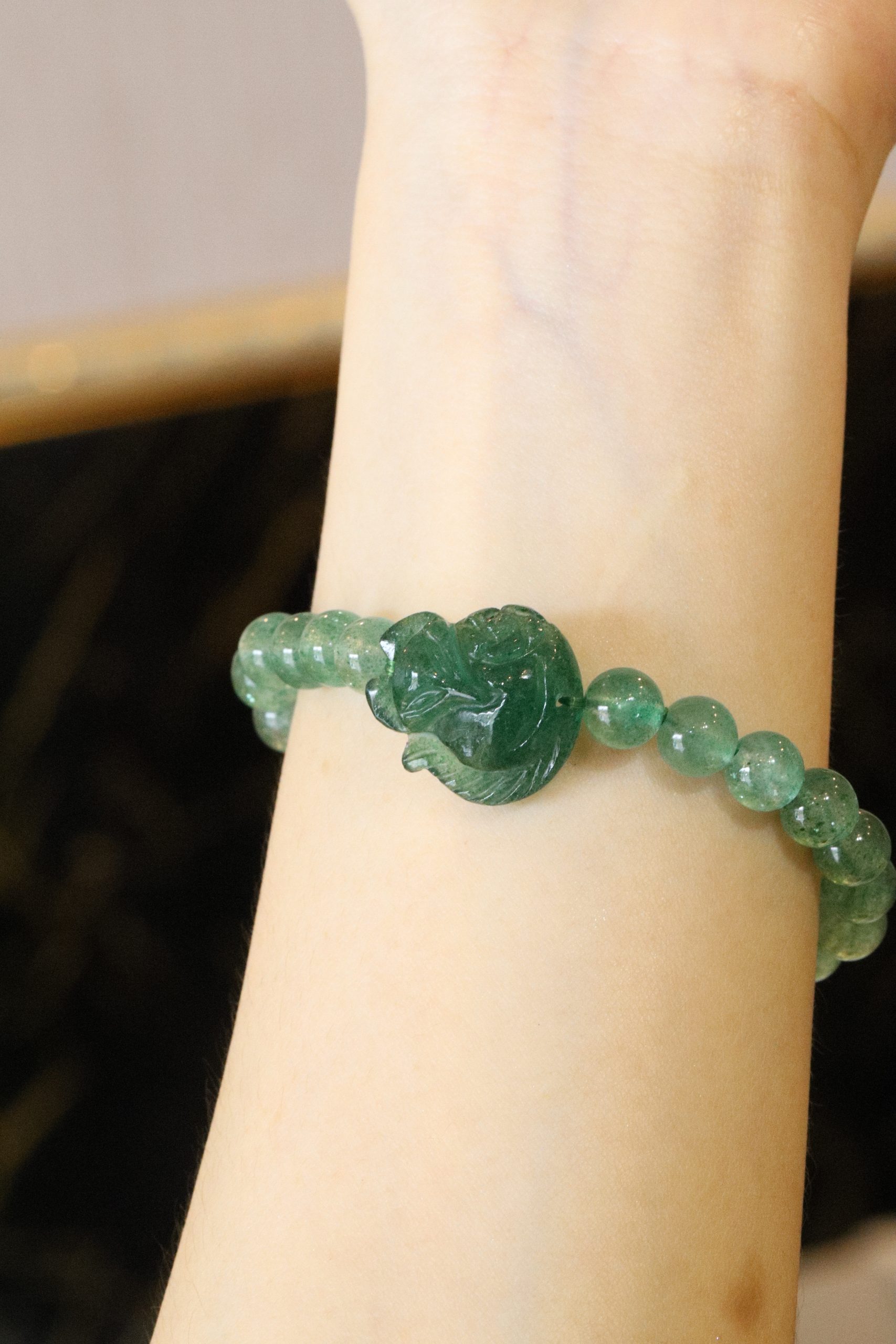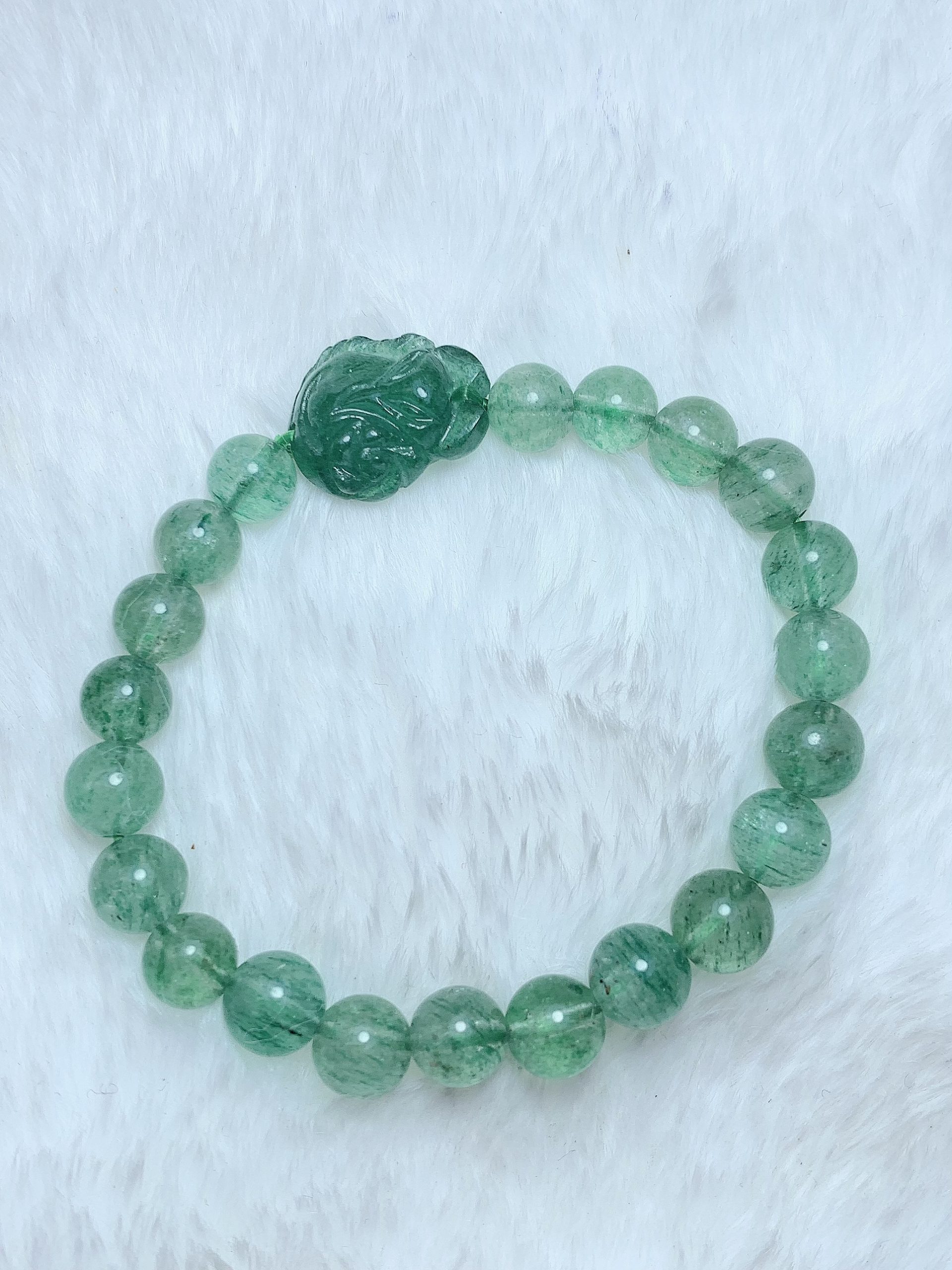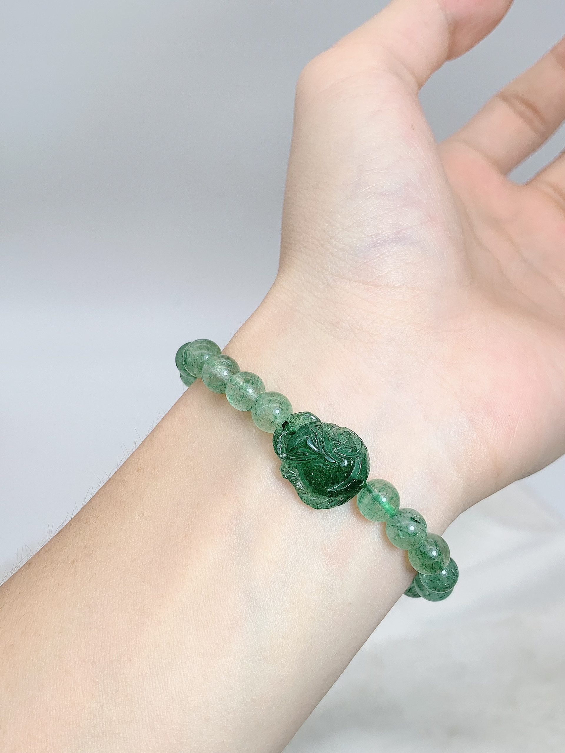 ខ្សែដៃ quartz កញ្ច្រោង រាង Strawberry បៃតង 8m